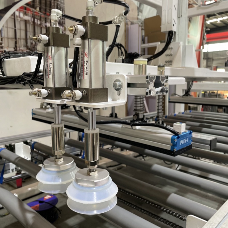 २. पोझिशनिंग अँड बॅगिंग: गॅन्ट्री मॅनिपुलेटर थेट पॅनल्सच्या वर जाण्यासाठी बळकावणारी यंत्रणा चालवते. औद्योगिक कॅमेरा पॅनेलची स्थिती शोधतो;